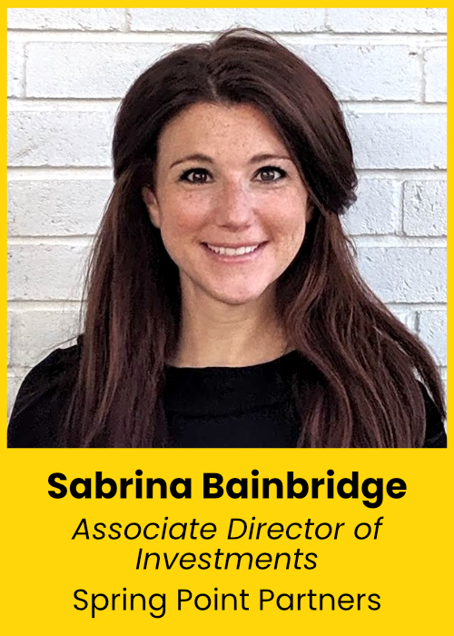 Sabrina Bainbridge serves as the Associate Director of Investments at Spring Point Partners (SPP), an independent investment firm that strategically allocates capital to maximize long-term financial performance. Since joining SPP, Sabrina has played a key role in advancing the firm's investment strategy, focusing on portfolio diversification, capital efficiency, and risk-adjusted returns. Sabrina works closely with fund managers and direct investments, leveraging flexible financial structures to enhance value creation across private markets and capitalize on emerging opportunities.